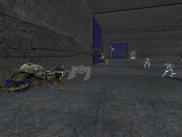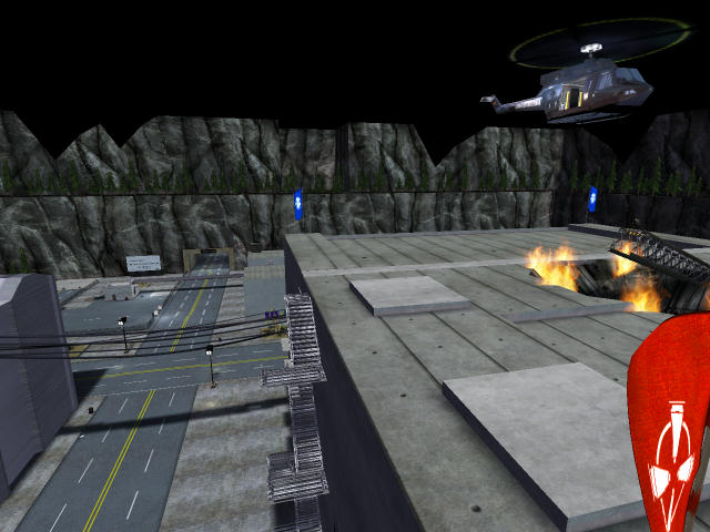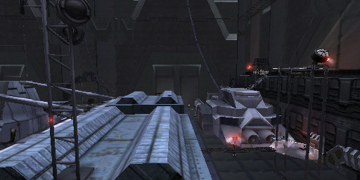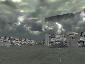 A heavily defended futuristic fort constructed in preparation for war. Vicious battle erupts as teams use deadly vehicles to support ground troops blasting their way to the flag. Base defenders should expect attacks to come from all directions, and snipers can use the high walkways to their advantage. On-foot combatants can take a direct route through the tight central area while ground vehicles use the roads to make their way around to the enemy base.